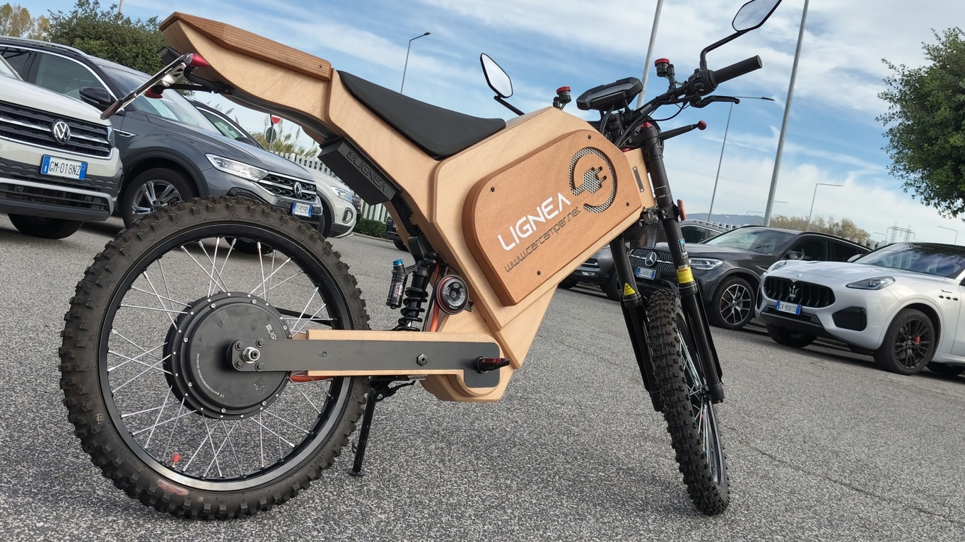 “LIGNEA” è la moto elettrica made in Italy con telaio e rifiniture in legno 100% ecosostenibile. Freni a disco ant/post, sospensioni interamente regolabili, luci full led, accessori Barracuda sono solo alcune delle caratteristiche che rendono “LIGNEA” assolutamente unica nel panorama motociclistico mondiale.